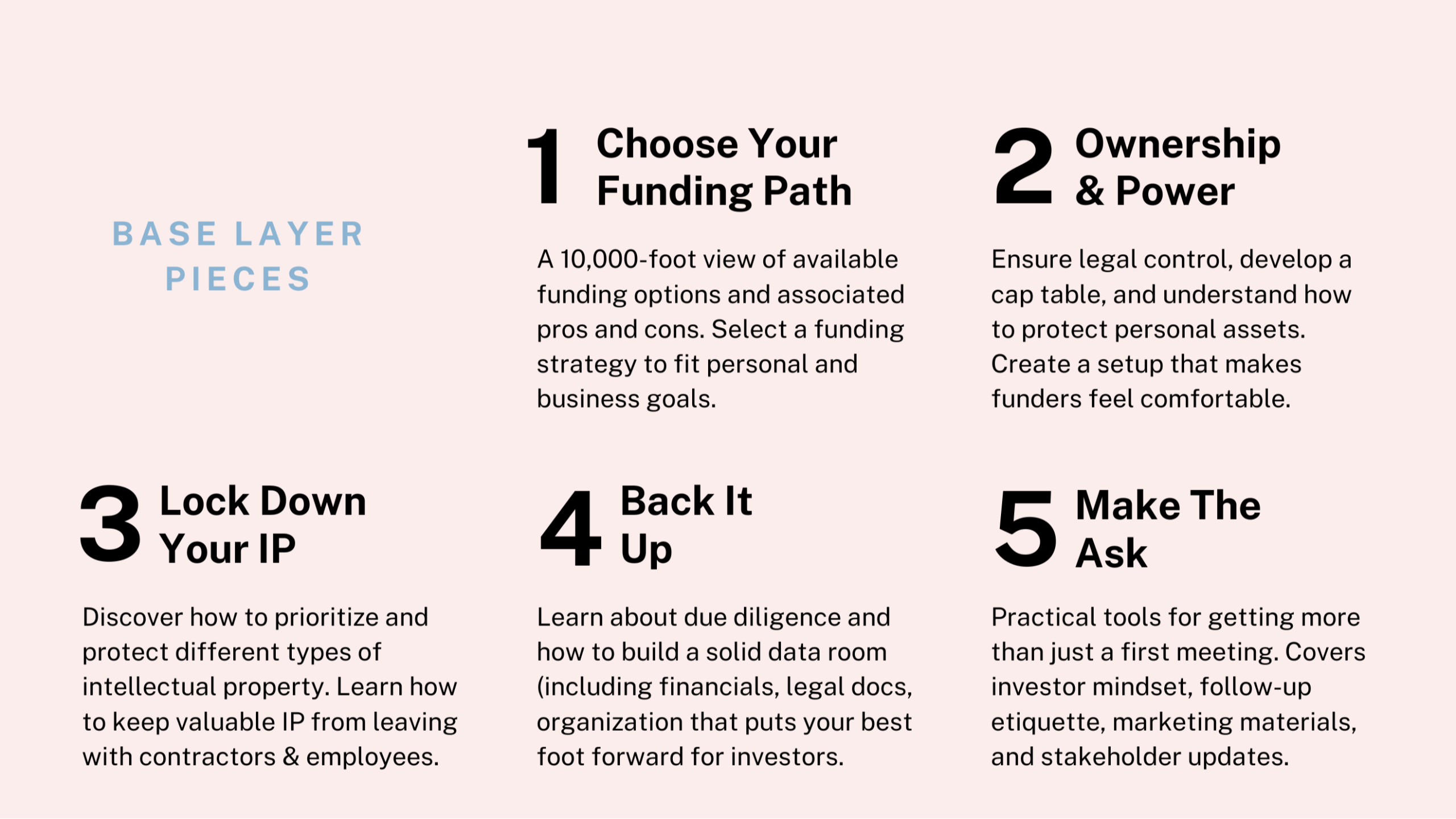Investors need to get comfortable with you and your company before they write a check. Base Layer helps you build the under-the-hood pieces that make them say yes.