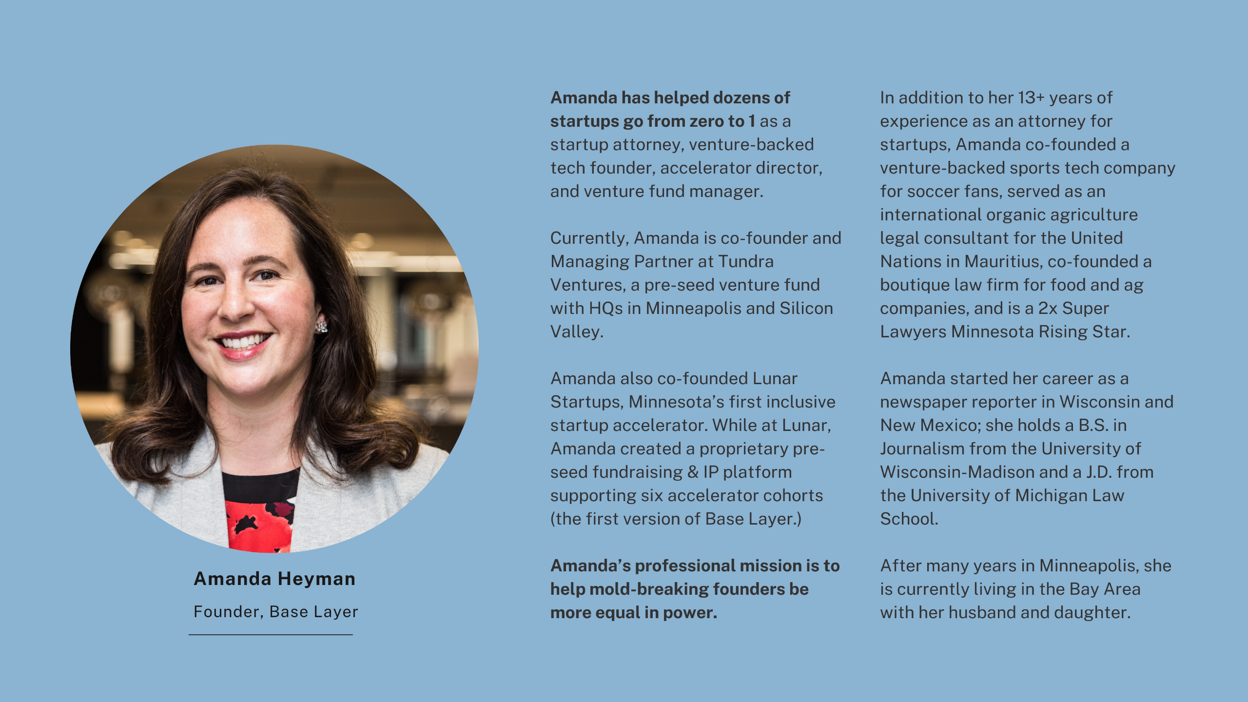 Base Layer is a 1:1 strategic advisory + investor-readiness framework for first-time founders coming out of Big Tech, Fortune 500, and other non-startup worlds.